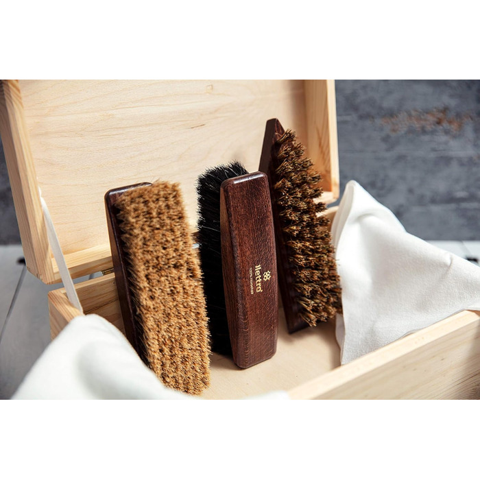 Опис Набір для догляду за шкірою Lettro, набір для догляду за туфлями та черевиками зі шкіри, набір для догляду за шкірою з щітками з кінського волосу, подарункова коробка, коробка для грумінгу