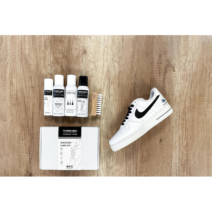Набір для чищення кросівок - це комплексне рішення, призначене для підтримки вашого взуття в оптимальному стані, незалежно від матеріалу або кольору. У цьому наборі зібрані різні спеціальні засоби для чищення та захисту улюблених кросівок. ЯК ВИ ВИКОРИСТОВУЄТЕ НАБІР? Для досягнення найкращих результатів дотримуйтесь цього крок за кроком: Чисто 1.- Ретельно струсіть WASC! Очистіть взуття перед використанням. 2. Нанесіть невелику кількість засобу на пензлик і безпосередньо на проміжну підошву. 3. Акуратно потріть щіткою по поверхні, поки весь бруд не буде видалений з взуття