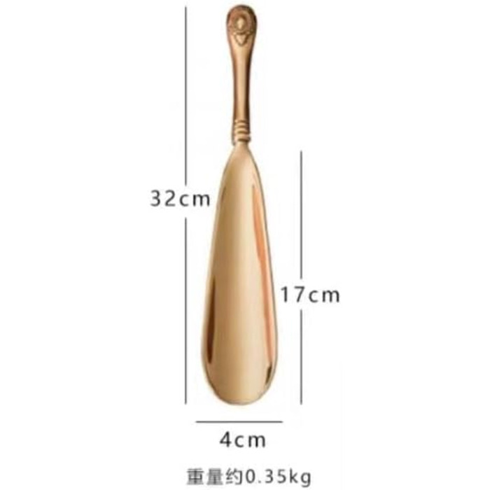 Опис З ручкою, Shoehorn, Shoe Helper для людей похилого віку, портативний компактний ріжк для взуття з короткою ручкою, простий у використанні латунний підйомник для взуття 32 см золото