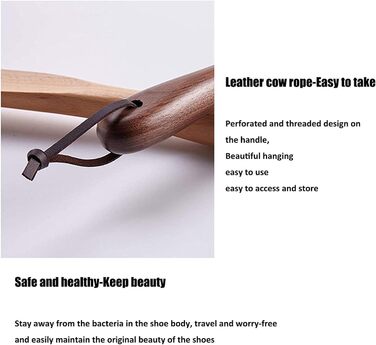 Опис Дерев'яний ріжок преміум-класу, 29-дюймовий підйомник для взуття з довгою ручкою, портативний ріжок для взуття з ремінцем з коров'ячої шкіри для дітей та людей похилого віку. Підходить для