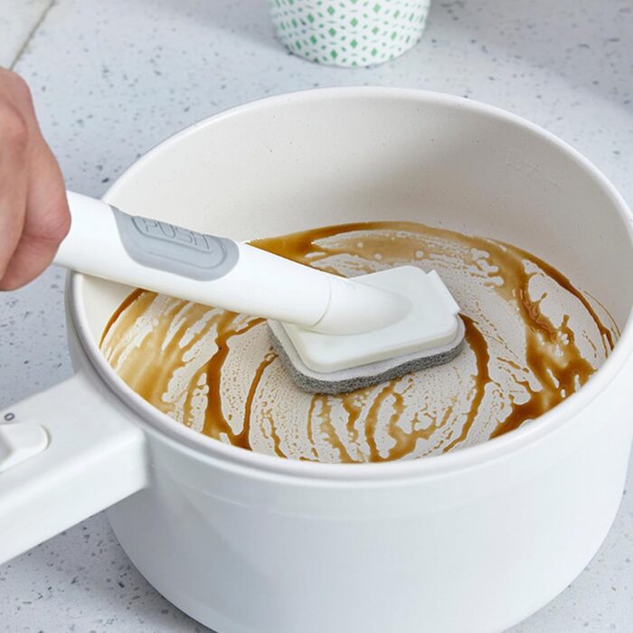Опис Щітка для миття посуду, щітка для чищення плити з 10 змінними насадками для щітки, довга ручка, щітка для каструлі для кухонної мийки