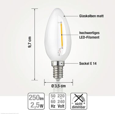 Світлодіодна лампа свічка E14, набір 10 світлодіодних ламп теплого білого кольору 2,5 Вт з світлодіодною ниткою 250 люмен, старовинна світлодіодна лампа E14 замінює 25-ватну лампу, C35 2700 Кельвін теплий білий матовий, 207200