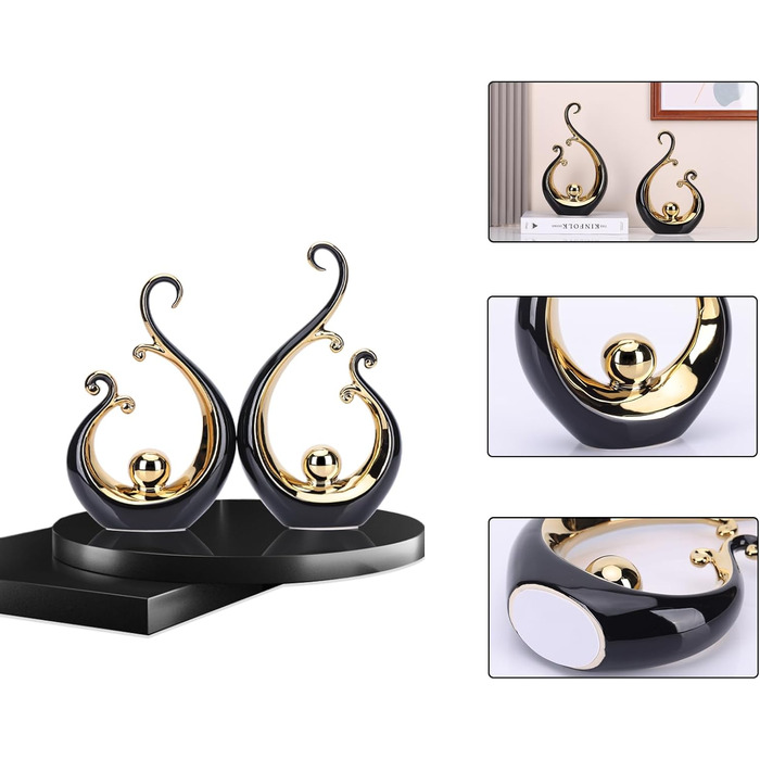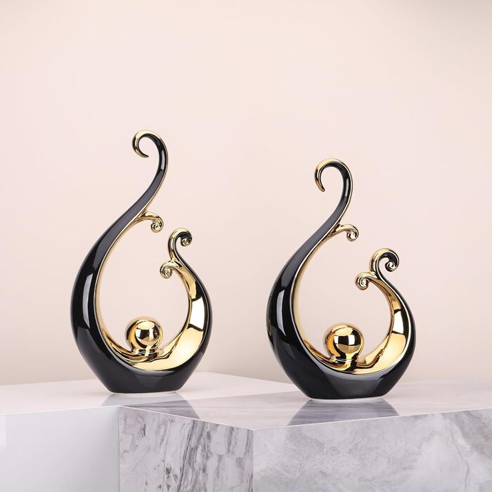 Елегантна художня прикраса】Коли світло падає на статую, її поверхня відображає унікальний ефект, додаючи динамізму та чарівності вашому простору. У вітальні, спальні, кабінеті чи офісі ця абстрактна скульптура з чорно-золотої кераміки буде привертати увагу. Вишуканий дизайн та кольори роблять її неперевершеним витвором мистецтва та декору, який миттєво прикрасить ваш простір елегантним поєднанням мистецтва.