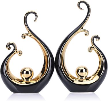 Керамічний декоративний виріб ручної роботи: Чорно-золота керамічна статуетка, набір з 2 штук, що складається з однієї великої та однієї маленької (великий розмір: В 29 см - Д 17 см - Ш 6,3 см, маленький розмір: В 25,9 см - Д 17 см - Ш 6,3 см), керамічний декоративний виріб ручної роботи, ідеальна прикраса для дому та подарунка або центральна деталь для їдальні. Вітальня або офіс.