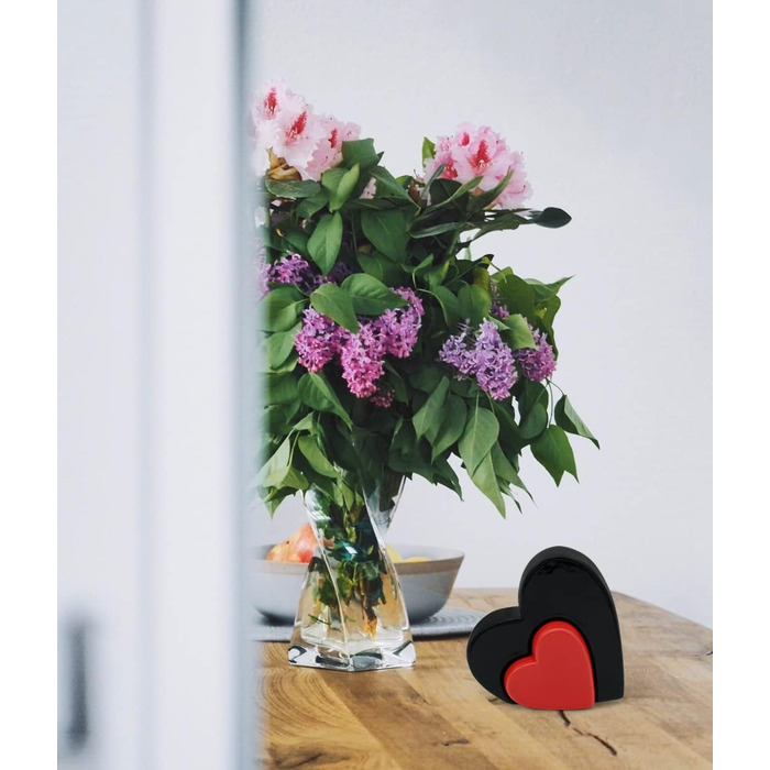Опис Стильні подвійні серця для прикраси - сучасне декоративне серце з кераміки висотою 13 см в чорно-червоному кольорі в наборі - скульптура подвійного серця гарний подарунок