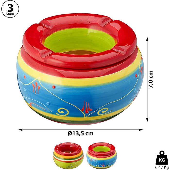 Обсяг поставки: 1 x набір з 3 різнокольорових попільничок Ø13,5 см без декору
