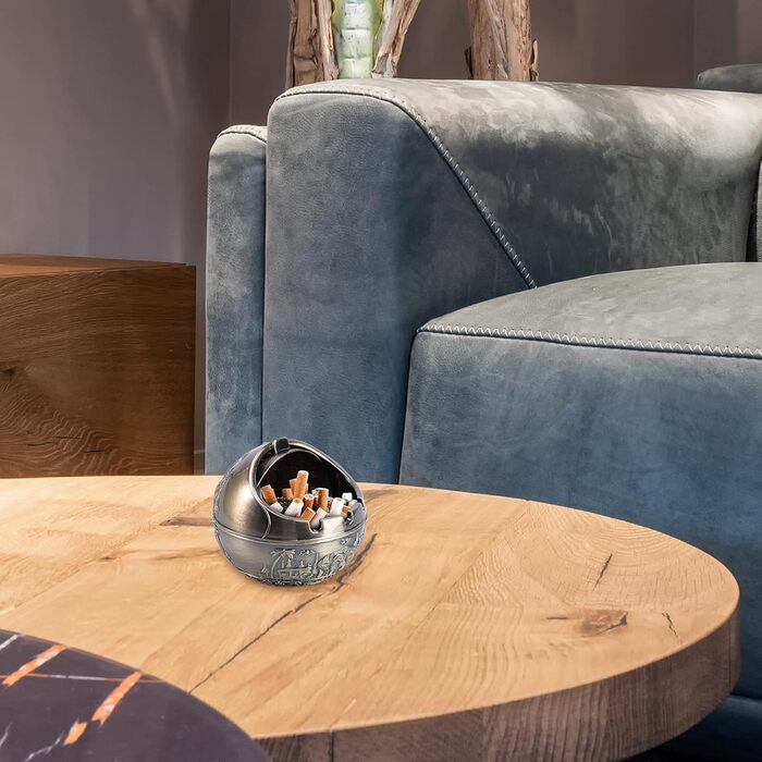 Ретро настільна прикраса для офісу, патіо, балкона, кафе, готелю / Спеціальний подарунок на день народження, ювілеї, Різдво / Спеціально розроблена для курців та любителів антикварного декору? Унікальна вітрозахисна напівзакрита конструкція кришки, щоб запобігти розвіюванню попелу вітром, підходить для зовнішнього та внутрішнього використання. За винятком недопалків та попелу.