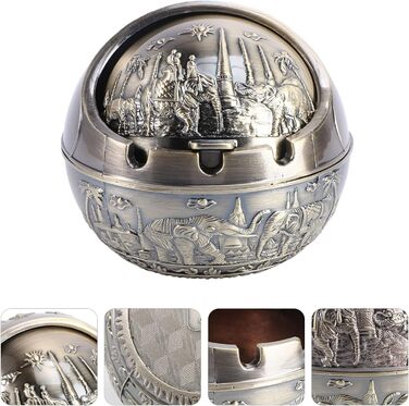Опис Вінтажна вітрозахисна попільничка з кришкою металевий слон попільничка тримач декоративний контейнер для попелу для куріння орнамент для зовнішнього внутрішнього декору домашнього офісу