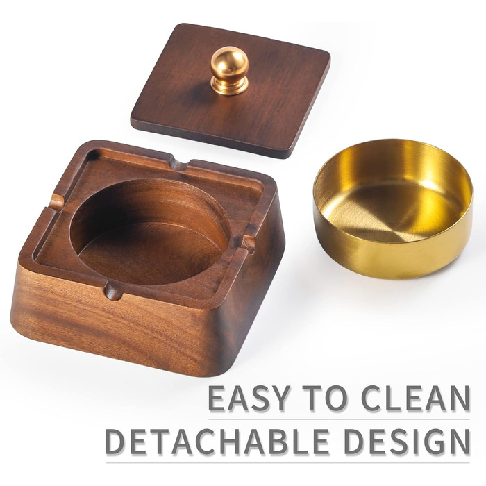 Опис Прохолодна попільничка для сигарет, попільничка-трапеція з підкладкою з нержавіючої сталі, легко миється, вітрозахисна дерев'яна попільничка з кришкою для дому, офісу, використання в приміщенні, вечірок