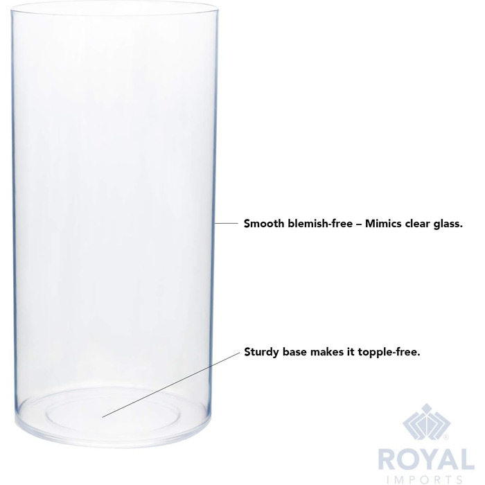Прикрасьте свій будинок, офіс або особливу подію цією привабливою вазою з твердого пластику від Royal Imports. Вона була розроблена так, щоб виглядати як прозоре скло, залишаючись при цьому небиткою. На відміну від інших пластикових ваз, ця красива прозора акрилова ваза виготовлена з міцного акрилу, щоб імітувати скляні вази і запобігти перекиданню або перекиданню. Наповніть вазу квітами та прикрасьте її коштовним камінням або підсвічуванням, щоб створити ще більш яскравий центральний елемент. Ця ваза - чудова альтернатива для дітей або домашніх тварин, де скло може бути небезпечним.