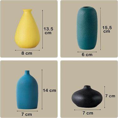 Маленькі керамічні вази для квітів Декоративний набір ваз для вітальні Міні вази ручної роботи килимок для прикраси столу Сучасні темно-зелені жовті небесно-блакитні чорні кольорові вази Набір з 4 ваз Стиль 2