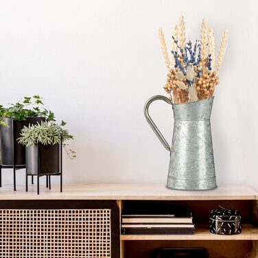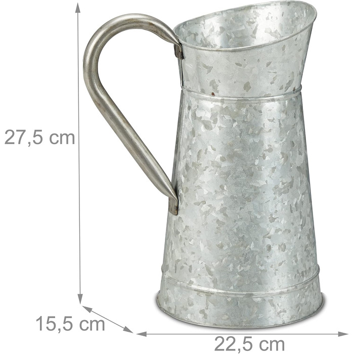 Вінтажний глечик Relaxdays, оцинкований метал, ваза для квітів, сухі квіти, прикраса заміського будинку, сад, балкон, вітальня, срібло, ука
