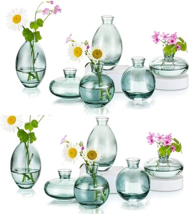 Маленькі вази для прикраси столу від Hewory, 12 шт. Ваза Скляні міні-вази набір Сучасна скляна ваза зелені Маленькі вази для квітів Для весільної прикраси столу Вітальня прикраса набір з 12 зелених