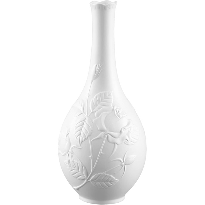 Дуже красива ваза Гебель з колекції Розенгартен Кайзер. Ваза виготовлена з білої порцеляни в білому кольорі. Розроблена з великою увагою до деталей, майстерно виготовлена вручну, ідеальний подарунок. Стильний візерунок, що складається з троянд, є візитною карткою серії Rosengarten. Розміри: 9 см х 9 см х 21 см.
