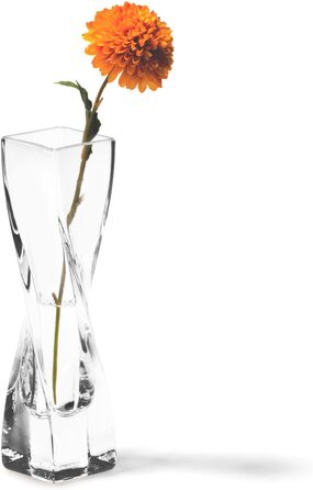 Ваза Leonardo Volare solifleur, вигнута ваза для квітів динамічної форми з суцільною крижаною основою, прозоре скло ручної роботи, висота 20 см, 210 мл, 014083