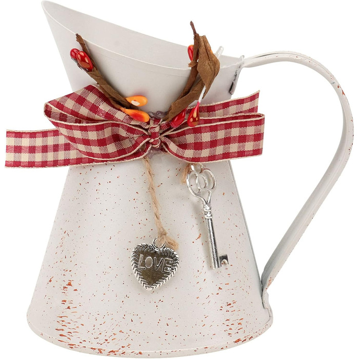 Ваза для квітів вінтажна сільська лійка квітковий горщик заміський будинок ваза металевий глечик кашпо кашпо квітка відро з бантом ключ потертий шик прикраса для офісного столу балкон вітальня прикраса бежевий