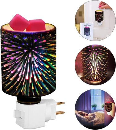 вбудована лампочка, переливчастого кольору, також працює як нічник, створює неповторну атмосферу в будь-якому приміщенні. Простий у використанні, на нього можна покласти кубик воску або ефірної олії, змішаної з невеликою кількістю води, теплий ароматичний віск може розтанути, вивільняючи улюблений аромат в будинку. Це свічка-грілка 3D-склянка