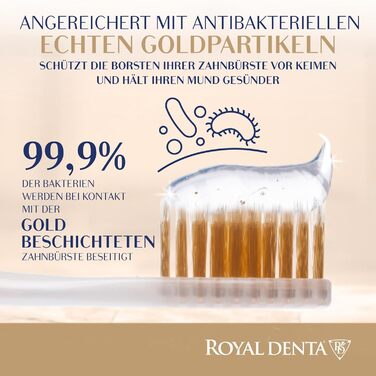 Зубні щітки Royal Denta Gold з м'якою щетиною 4 упаковки - щетинки подвійної довжини для ефективного чищення міжзубних проміжків, частинки золота проти бактерій, м'яка щітка для чутливих зубів, багатобарвна ука (4 упаковки)