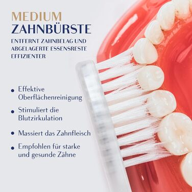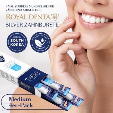 Зубні щітки Royal Denta Silver Medium 4 Pack - щетина подвійної довжини для чищення міжзубних проміжків, антибактеріальні частинки срібла, видалення зубного каменю, середньої сили, багатобарвна