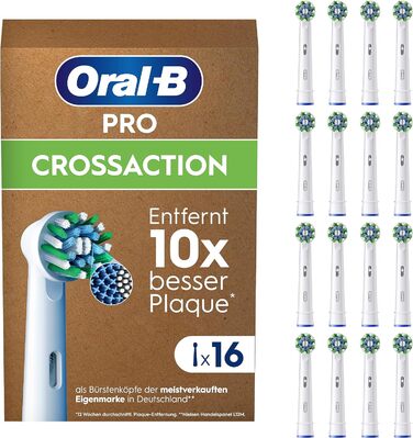 Щітки Oral-B Pro CrossAction для електричної зубної щітки, 12 шт. , чудове чищення зубів, X-щетина, оригінальна насадка для зубної щітки Oral-B, упаковка, готова до поштової скриньки, Зроблено в Німеччині (16 шт. (1 упаковка), Біла)