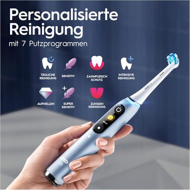 Oral-B iO перевершує всі очікування від зубної щітки завдяки неймовірній ефективності очищення та сенсаційному відчуттю в роті. Інноваційна система магнітного приводу Oral-B iO передає енергію з ювелірною точністю на кінчики щетинок, які ковзають від зуба до зуба з м'якими мікровібраціями для ефективного та приємного чищення. Насолоджуйтесь відчуттям свіжості, як від стоматолога щодня! Oral-B iO допомагає захистити ясна від надмірного тиску. Інтелектуальний регулятор тиску попереджає про занадто високий тиск червоним світлом і загоряється зеленим, коли ви використовуєте оптимальний тиск. Інтерактивний дисплей дозволяє легко переміщатися між різними функціями та налаштуваннями щітки. Вибирайте між різними режимами очищення, отримуйте персоналізовані інструкції в режимі реального часу та нагадування про необхідність змінити насадку для щітки. Візуальний таймер надає інформацію про рекомендований час чищення зубів – 2 хвилини. Зубна щітка зустрічає вас вранці і дарує посмішку після чищення для чудових результатів. Додаток пропонує інтерактивну 3D-графіку, а Oral-B iO розпізнає всі 16 поверхонь зубів у роті завдяки інноваційній технології розпізнавання зубів за допомогою штучного інтелекту. Відчуйте досвід чищення зубів, який надихає вже зараз!