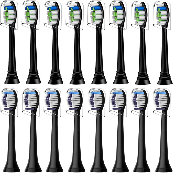 Насадка для зубної щітки 16 шт., сумісна з електричною зубною щіткою Philips Sonicare, 8 насадок для щітки Precision Clean і 8 насадок для відбілювання, чорна. 16 шт. (1 упаковка)