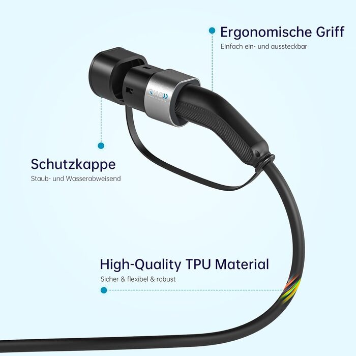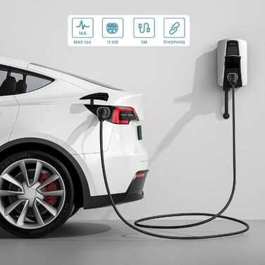 Кабель для заряджання електромобіля QIAO, тип 2, 11 кВт, 5 м, 16 А, 3 фази, IEC 62196, кабель для заряджання електромобіля від типу 2 до типу 2, кабель для швидкого заряджання електромобіля/підключається до мережі з сумкою для транспортування