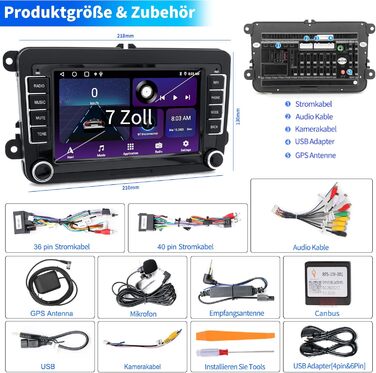 Автомагнітола для VW Passat Golf Polo Caddy Bettle Touran Tiguan Jetta Seat Skoda, система Android 12 2G64G, 7-дюймовий сенсорний екран Carplay Android Auto GPS Navi WiFi Bluetooth FM RDS радіо