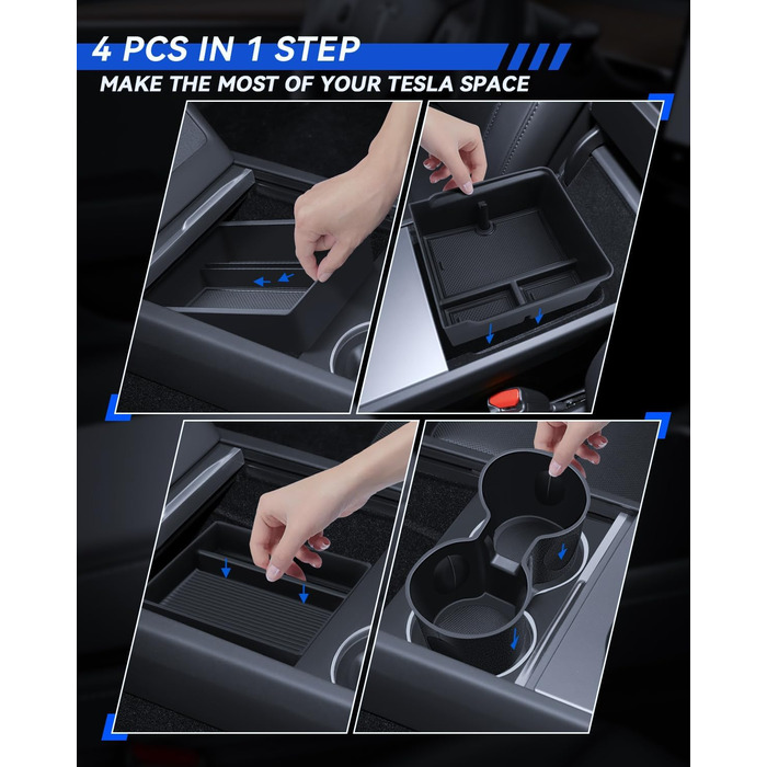 Аксесуари LANTU 4 шт. для органайзера центральної консолі Tesla Model 3 2024, лотка силіконового органайзера, ящика для зберігання підлокітника та тримача чашки на центральній консолі Аксесуари Tesla Model 3 2024 Highland