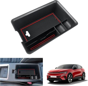 Опис Сумісний з Renault Megane E-Tech 2022 2023 2024 Коробка для зберігання на центральній консолі, органайзер для підлокітника Megane E Tech, бардачок для лотка, аксесуари Megane E-Tech (червоний)