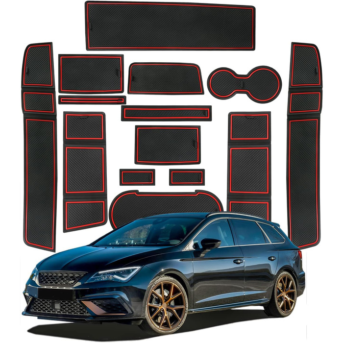 Для Seat Leon Cupra Leon 5F MK3 FR ST 5D 2017 2018 2019 2020 Гумові килимки, Протиковзкі килимки на центральній консолі, Килимок для чашки, Дверний килимок Коробка для зберігання Протиковзкий килимок (червоний)