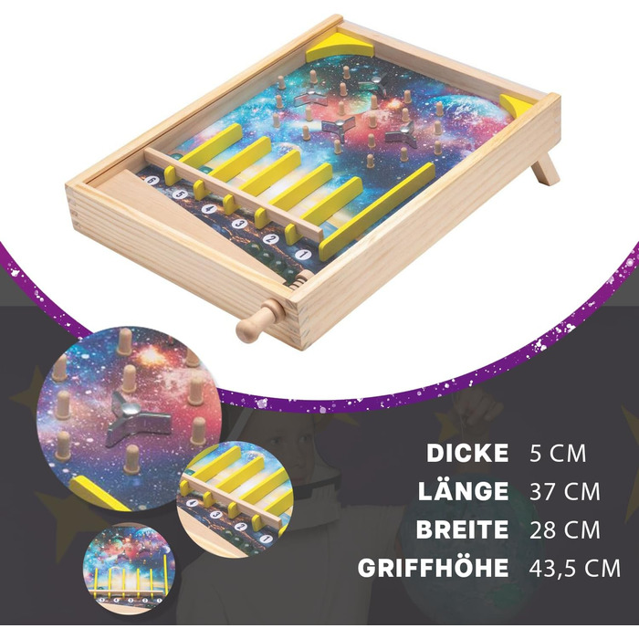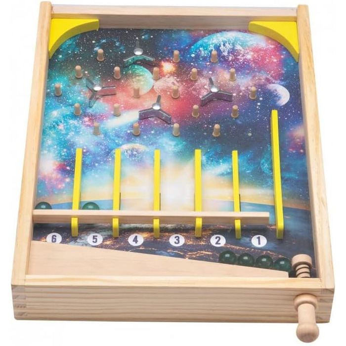 Дерев'яна дитяча іграшка для пінболу - Дитяча іграшка від 3 років 5 см х 28 см х 37 см, висота ручки 43,5 см - Колекція дерев'яних аркадних ігор для пінболу, 4IQ Group