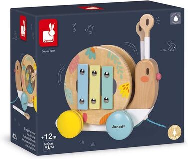 Чистий равлик, що тягнеться - Дерев'яна іграшка з ксилофоном і бубном - Музична навчальна іграшка Монтессорі - Фарби на водній основі - Дитяча іграшка від 1 року, J05159