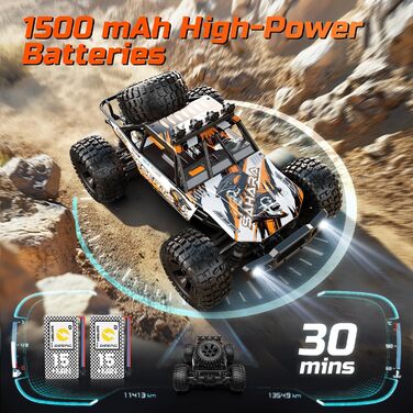 Дистанційно керований автомобіль DEERC в масштабі 110 для дорослих і хлопчиків, 48 км / год 4X4 хобі RC монстр-трак з ліхтарями, 2 батареї для 30 хвилин веселощів, 2.4 ГГц всюдихідний RC-автомобіль