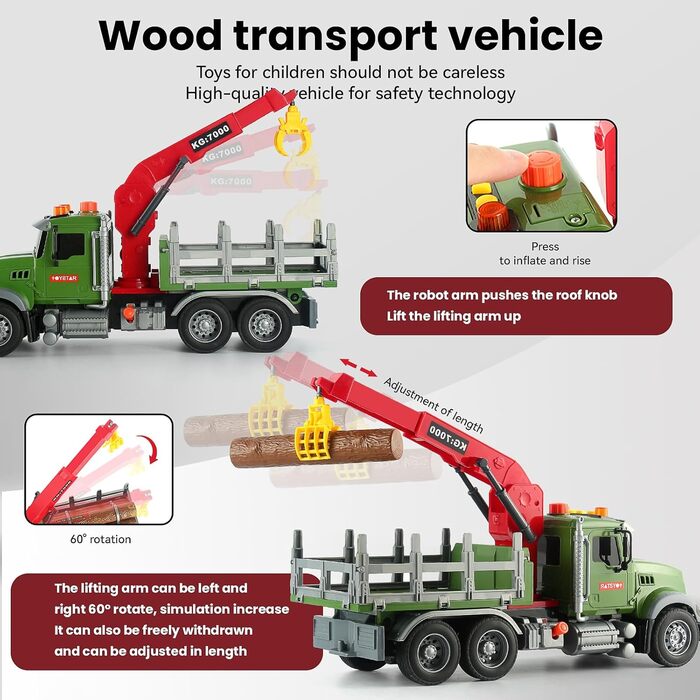 Дерев'яна транспортна вантажівка XUEXUE 118 та причіп 2-в-1, підходить для хлопчиків віком від 3 років, вантажівка з реалістичними світловими та звуковими ефектами. (дерев'яний транспортер)