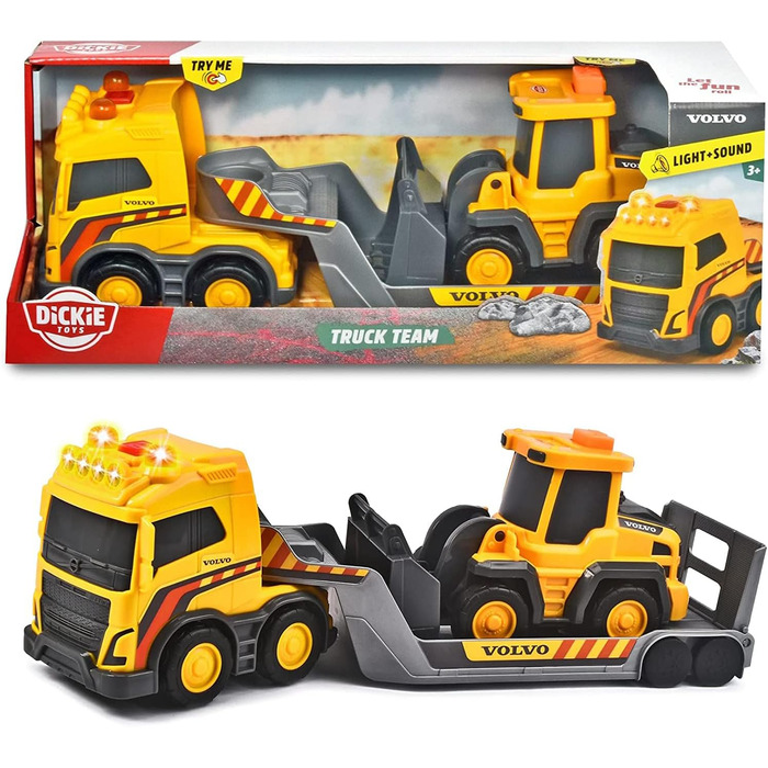 Велика іграшкова вантажівка з причепом і колісним навантажувачем, зі світловими та звуковими ефектами, з вільним ходом, для дітей від 3 років, жовта
