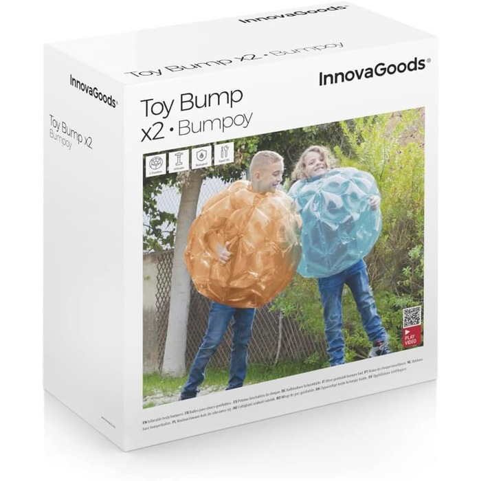 Гігантські надувні м’ячі InnovaGoods Bumpoy Bubble — це захоплива розвага для дітей і дорослих на свіжому повітрі. Виготовлені з міцного ПВХ, вони стійкі до деформацій, багаторазові та безпечні у використанні. Завдяки 6 незалежним камерам навіть при пошкодженні однієї з них гра може продовжуватись. М’ячі мають отвори для рук, шиї та талії, що забезпечує комфорт і захист під час стрибків, катання та веселих баталій. У комплект входить набір із двох куль (синя та помаранчева), а також ремонтна латка для дрібних пошкоджень.