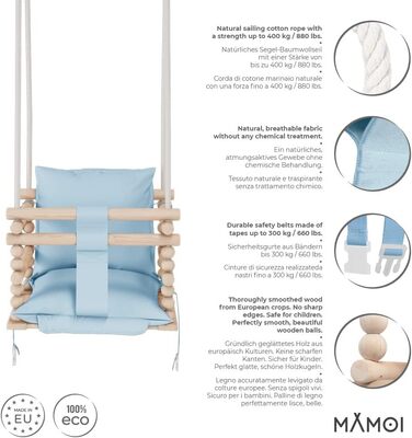 Гойдалки для приміщень, Дерев'яні гойдалки для немовлят і дітей, Дитячі гойдалки, Дерев'яні гойдалки, Гойдалки для малюків для дитячої кімнати та дверної коробки, 3 в 1 (Синій)