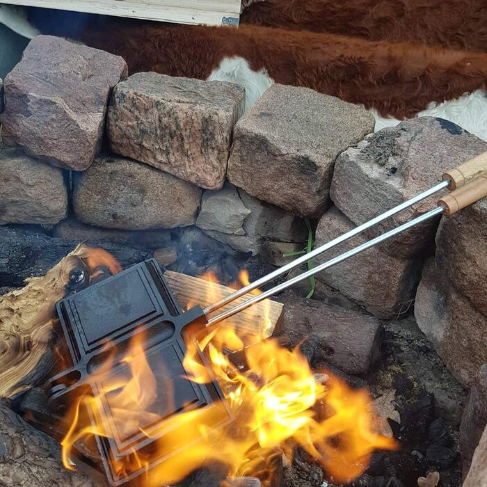 Вафельниця для барбекю-Toro Сендвіч-залізо Вафлі Праска для пирога прямокутна подвійна форма з чавуну, чорна - вже витримана