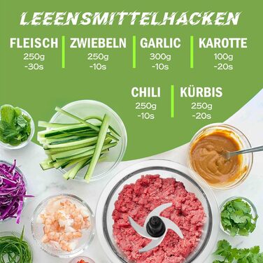 Кухонний подрібнювач SUPERLEX 2-в-1 електричний 2-швидкісний зі скляним контейнером і кришкою, подрібнювач овочів 1,5 л, блендер, мульти і універсальний подрібнювач овочів, фруктів і м'яса