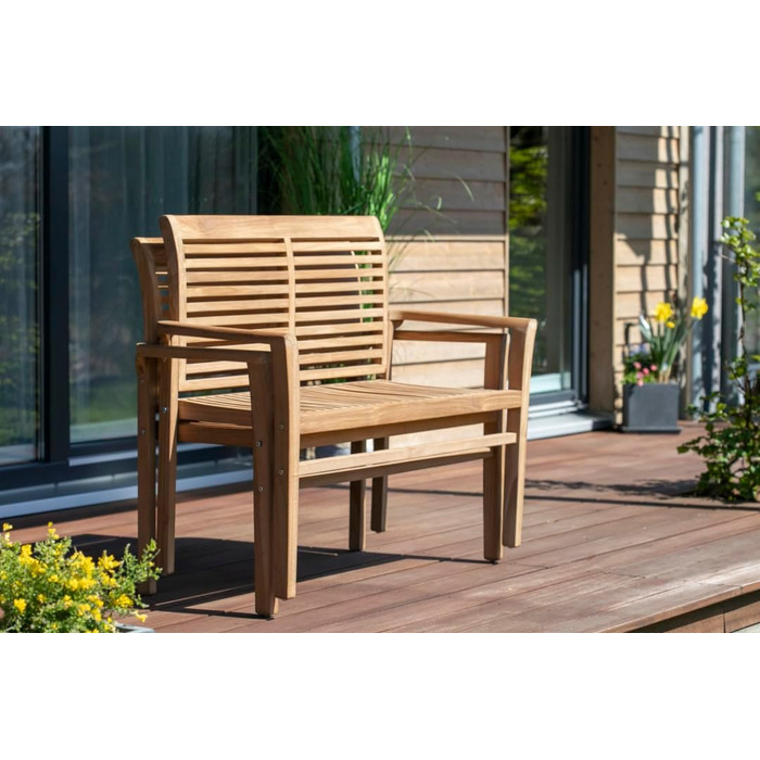 Наша лавка для тикового саду Derby є ідеальним вибором для створення стильного куточка для відпочинку на вашій терасі або балконі. Його сучасний і в той же час стриманий дизайн робить його універсальним предметом меблів для сидіння, який ідеально гармонує з будь-яким зовнішнім дизайном. Завдяки природному ефекту масиву натурального дерева, дана модель підійде як в якості додаткового сидіння на терасі, обладнаній якісними меблями з тика або шезлонгом, так і для створення оазису спокою посеред сільської місцевості. Лавка Дербі випромінює романтично-мрійливий ефект на садовому ставку або невеликому фонтані, в безпосередній близькості від трояндової арки або на прогрітій сонцем стіні будинку. Міцна і довговічна натуральна деревина робить штабельовану лавку з тика Derby особливо стійкою і стійкою до погодних умов. Ці вуличні меблі найвищої якості пропонують незліченні можливості дизайну в різних місцях вашої власності.