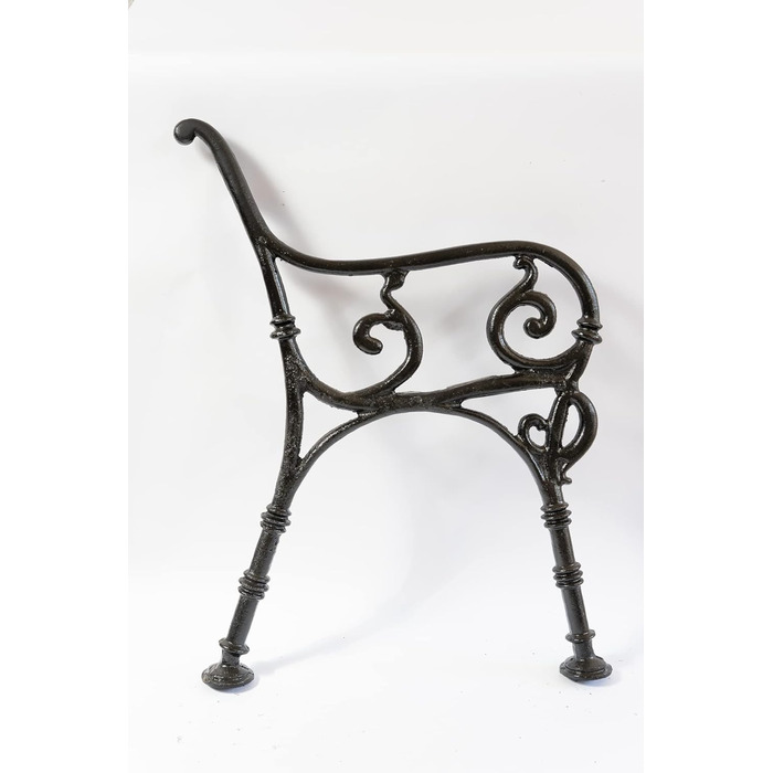 Опис Ніжки лавки чавунні SEZAM Black х 2 шт. и, зі спинкою і підлокітником - 54,5 х 35 х 75 см, на 6 дерев'яних лавкових дощок - для садових лавок, бічна панель