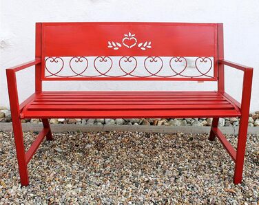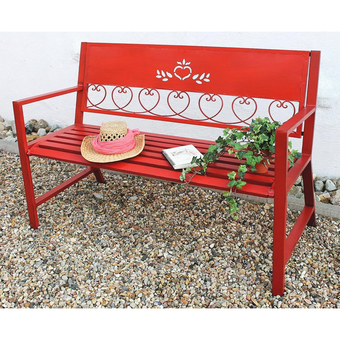 Внесіть нотку романтики у свій дім і сад за допомогою цієї елегантно виготовленої паркової лавки в червоному кольорі.