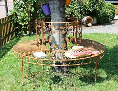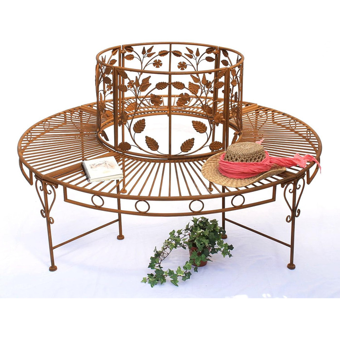 Елегантна і в той же час міцна кругла лавка з металу в кольорі коричнево-іржавого кольору стане справжньою привертає увагу у вашому саду.