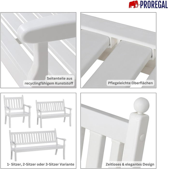 Садова лавка PROREGAL Аруба 3-місний Білий ВхШхГ 88х160х69см Стійкий до атмосферних впливів та ультрафіолету пластик Паркова лавка Лавка Відкритий сад Балкон Тераса 3 місця
