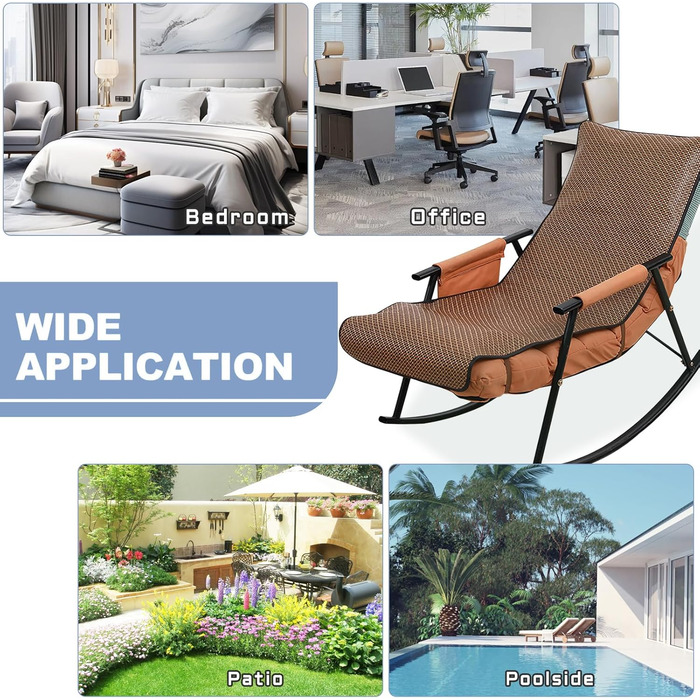Матеріал з ротангу: подушка для садового шезлонга прохолодна, але не холодна. Завдяки майстерності плетіння ротангу бамбукове волокно щільно упаковане, акуратно прошите, гіпоалергенне та не подразнює шкіру. Гладка поверхня без задирок, невеликі проміжки.