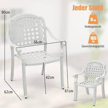 Садові крісла COSTWAY поєднують елегантність, довговічність і комфорт. Виготовлені з литого алюмінію, вони стійкі до іржі, опадів і сонячних променів, що робить їх ідеальними для цілорічного використання просто неба. Ергономічна форма спинки, сидіння та підлокітників забезпечує зручне положення тіла, а регульовані ніжки гарантують стійкість навіть на нерівних поверхнях. Завдяки штабельованій конструкції крісла легко зберігати, економлячи простір.