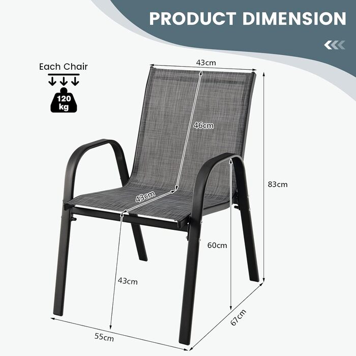 Опис Садові крісла GIANTEX із текстилену (4 шт., сірі)