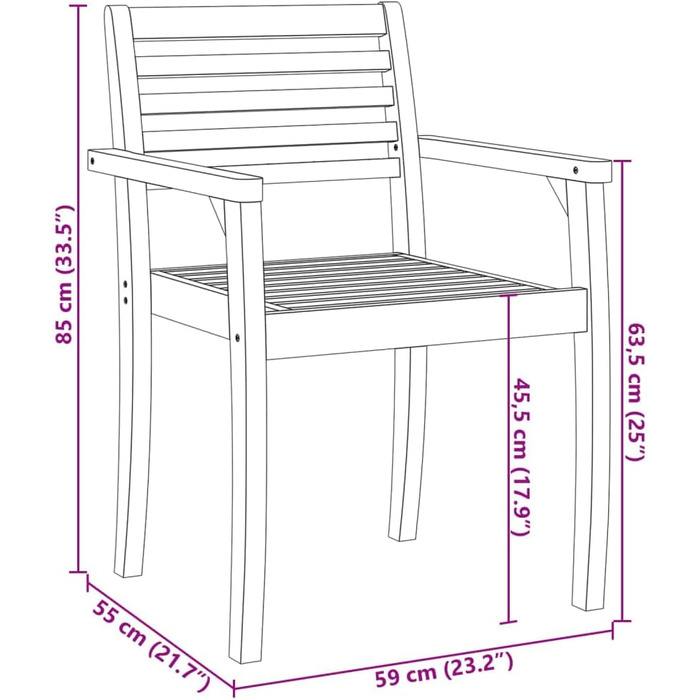 Набір садових крісел vidaXL із суцільної акації поєднує природну красу та довговічність. Завдяки міцній деревині тропічного походження ці крісла витримують щоденне використання просто неба, не втрачаючи привабливого вигляду. Планчаста конструкція не затримує воду, забезпечуючи сухість сидіння після дощу, а зручні підлокітники та спинка створюють комфортну зону відпочинку.