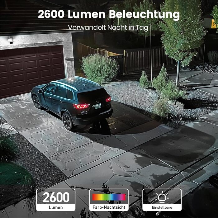 Зовнішня камера спостереження AOSU 3K з прожектором 2600 люмен - 360-градусна дротова зовнішня камера з 3 PIR-детекторами руху, світлодіодною розумною лампою, цілодобовим записом і розпізнаванням AI